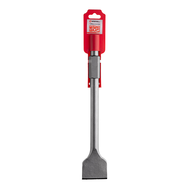 Зубило-лопатка INTERTOOL призначене для демонтажних робіт та буріння міцних абразивних матеріалів, таких як цегла, бетон, піноблок, камінь тощо. Використовуються спільно з відбійними молотками.