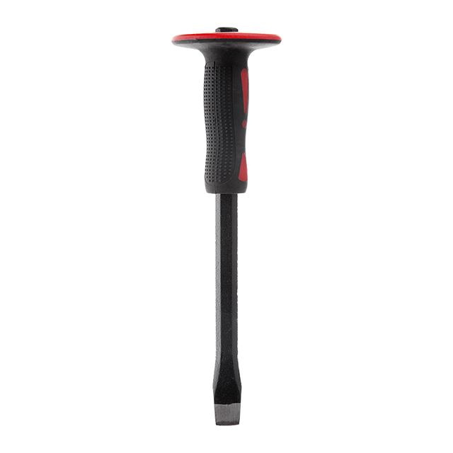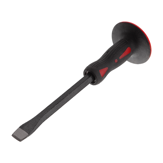 Інструмент виготовлений з високоякісної інструментальної сталі, робоче лезо додатково загартоване для забезпечення більшої міцності та довговічності. Ручка ергономічної форми, виготовлена із сучасного матеріалу – скловолокна. Міцний та легкий, він забезпечує максимальний комфорт під час інтенсивних робіт. Гумове покриття дозволяє надійно утримувати інструмент, що сприяє точній роботі. Спеціальний майданчик на торці збільшує ударну площу та захищає руки від випадкового удару молотком.