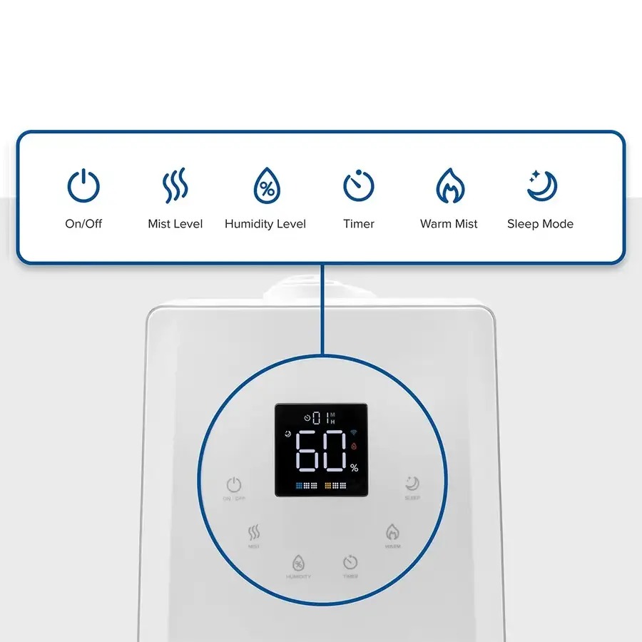 Levoit LV600S Smart Hybrid Ultrasonic Humidifier має зручну світлодіодну сенсорну панель, яка допоможе налаштувати основні функції. Також із будь-якої точки світу ви можете налаштувати роботу зволожувача зі смартфона із безплатним додатком VeSync: вмикати та вимикати, обирати режим та потужність, встановлювати таймер, створювати розклад роботи тощо. А помічники Google Assistant та Amazon Alexa зроблять використання очищувача ще комфортнішим із голосовими командами.